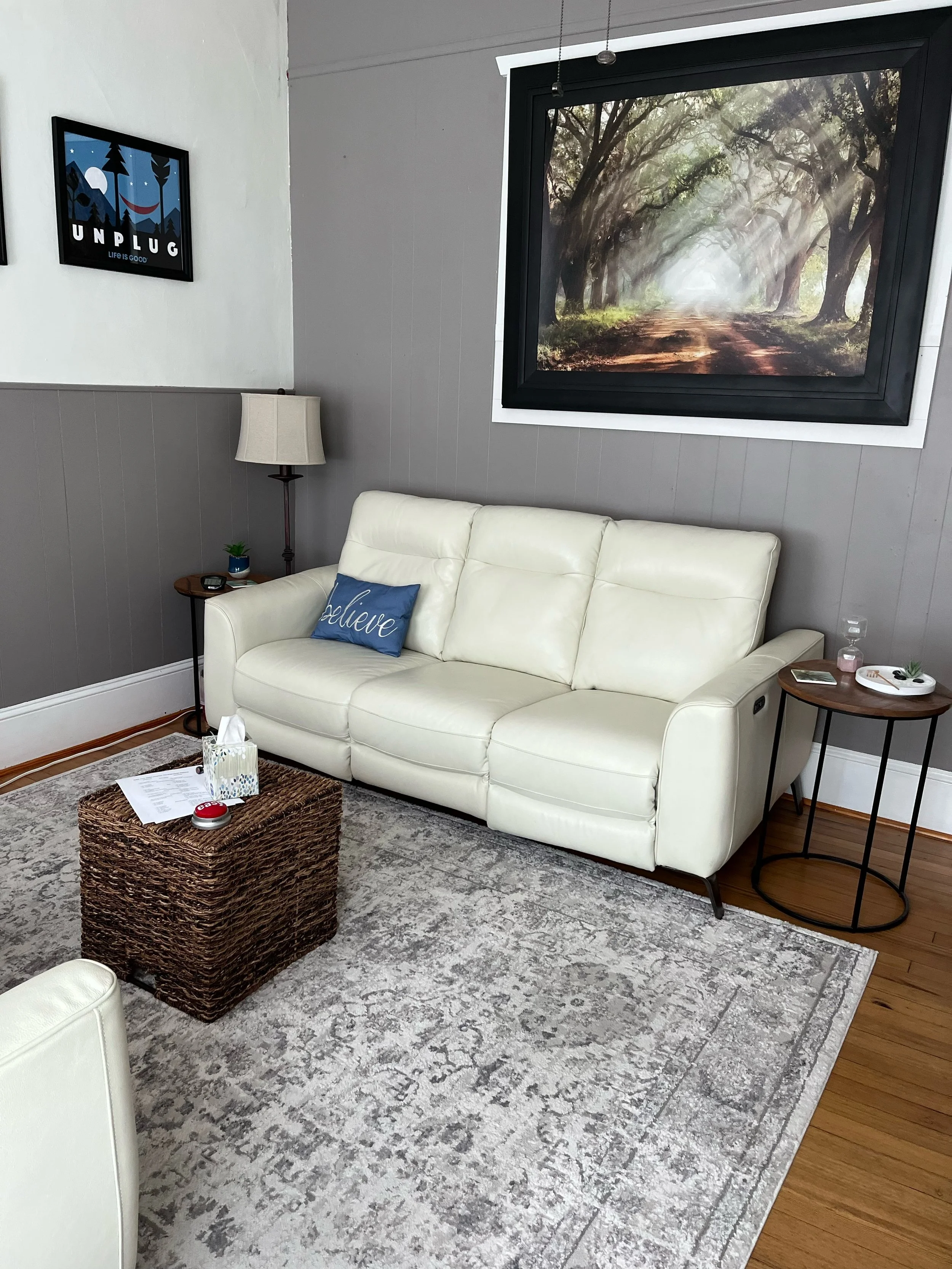 Our office, located in the heart of charming Downtown DeLand, is designed to be a welcoming space where you can relax and feel at home. Sit, rest, reset, and let yourself unwind during your session. We encourage you to allow your body to relax as you share your thoughts and feelings.